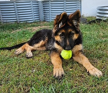 Freya at 3 months old from a previous litter. Owner says "Freya is incredibly easy to teach, even easier than my malinois. She is a genius!"